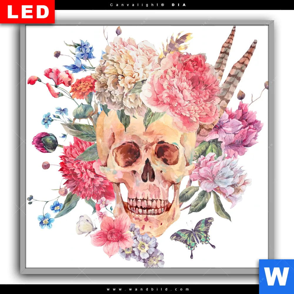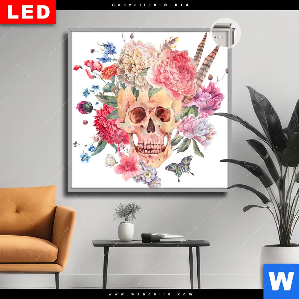 Canvalight® DIA Leuchtbild | Schädel im Boho Stil | Quadrat