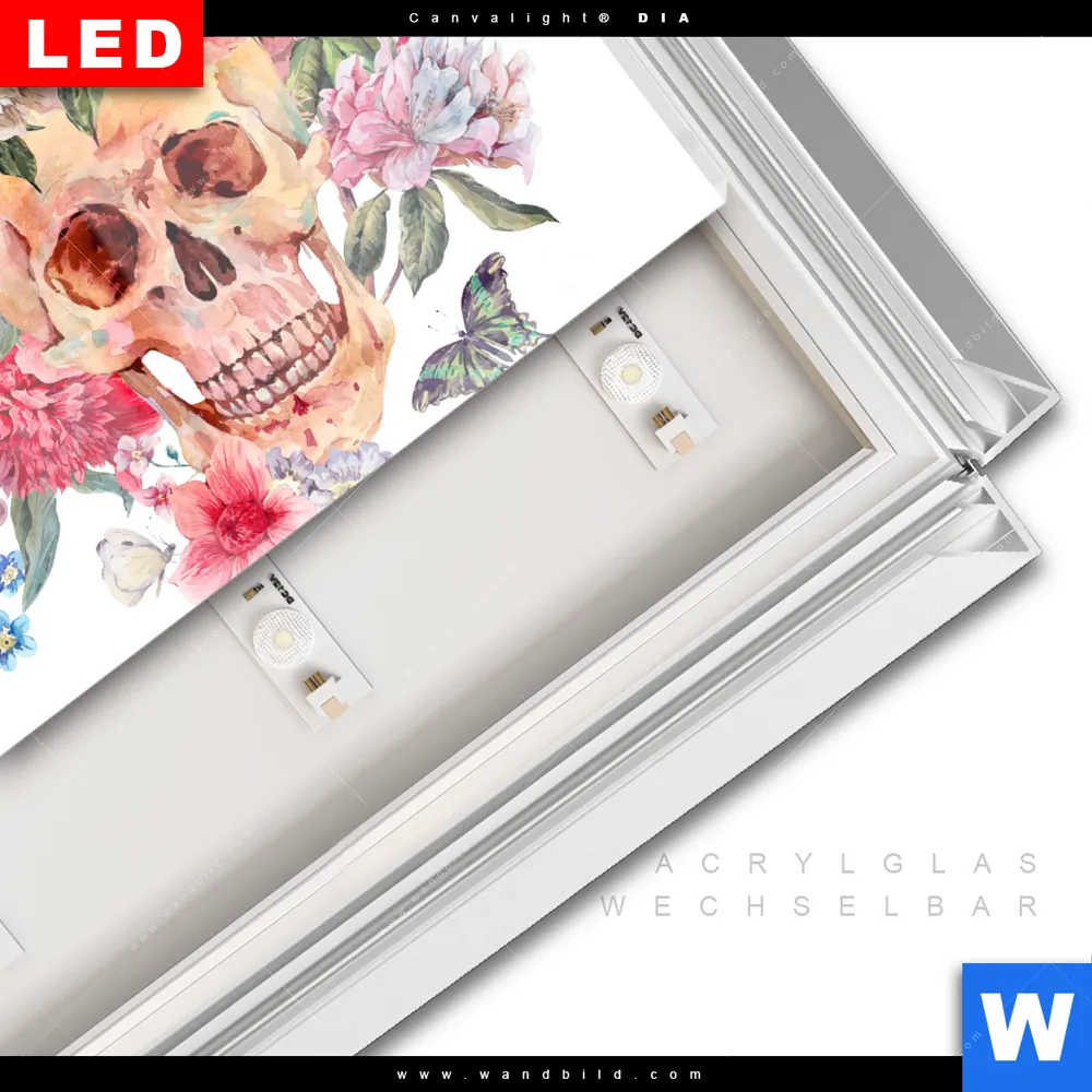 Leuchtbild Acrylglas Canvalight® DIA | Schädel im Boho Stil | Querformat