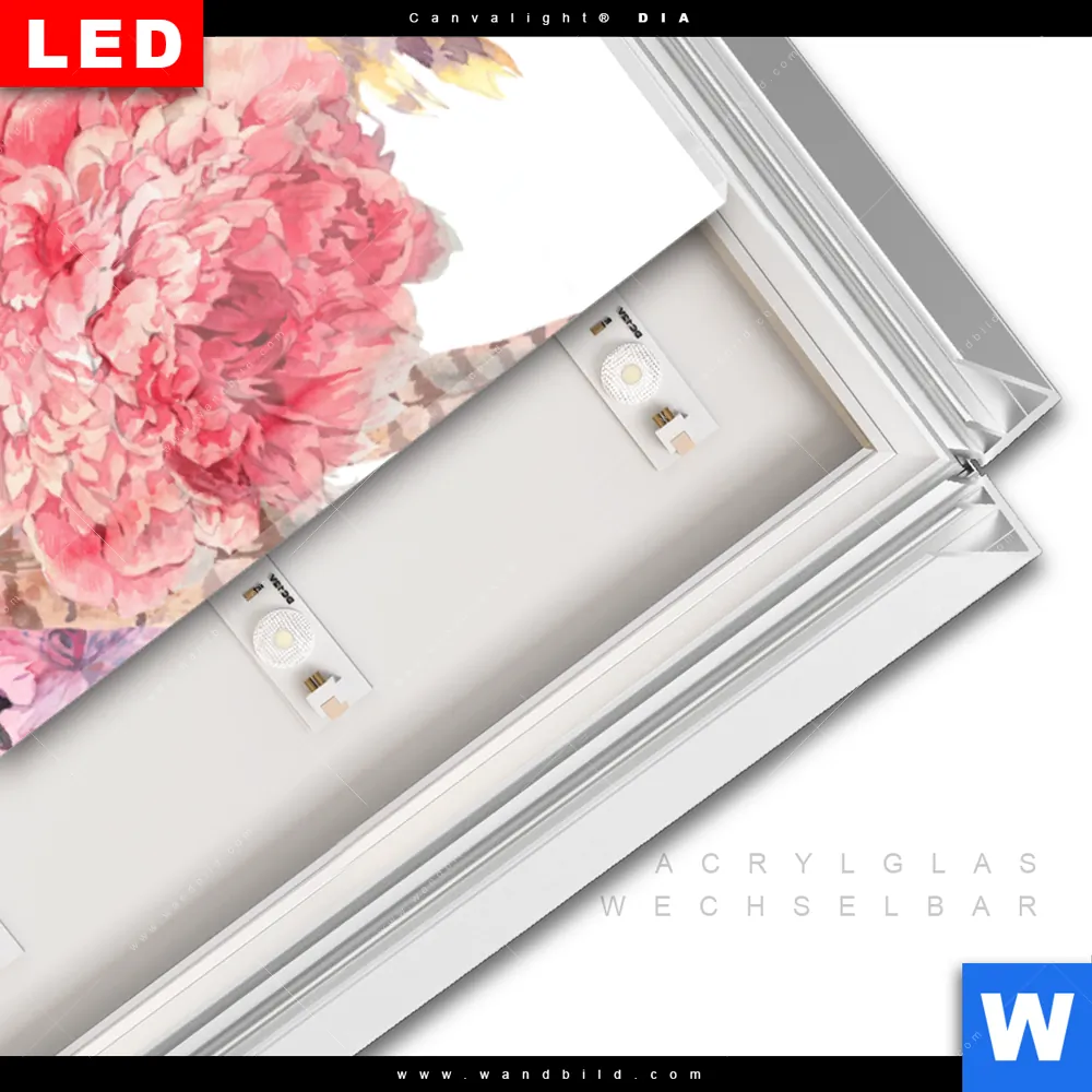 LED-Glasbild mit austauschbarem Acrylglas-Druck (Wechselbild)