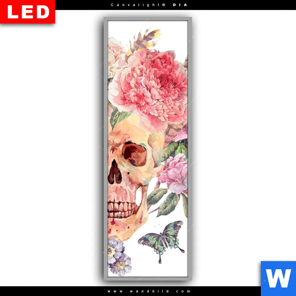 Leuchtbild Acrylglas Canvalight® DIA | Schädel im Boho Stil | Schmal