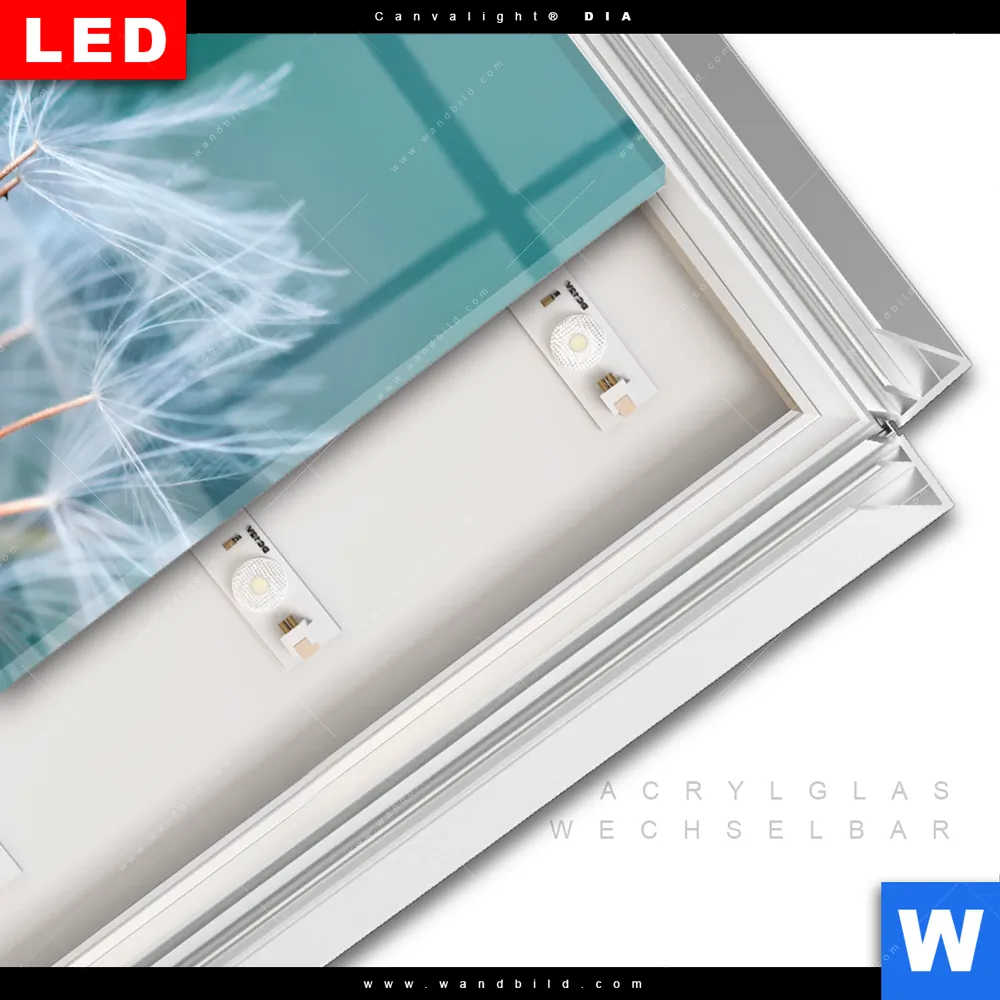 LED-Glasbild mit austauschbarem Acrylglas-Druck (Wechselbild)