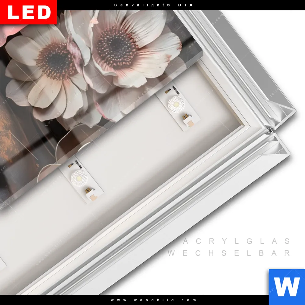 LED-Glasbild mit austauschbarem Acrylglas-Druck (Wechselbild)