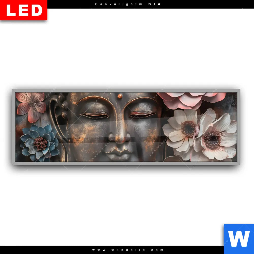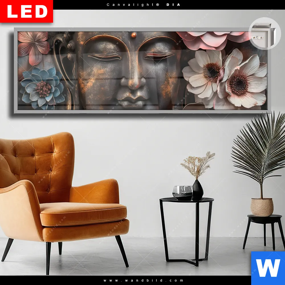 Canvalight® DIA Leuchtbild | Spiritueller Buddha und Blumen | Panorama