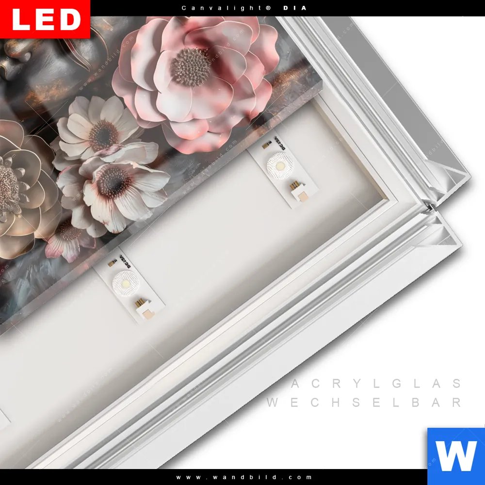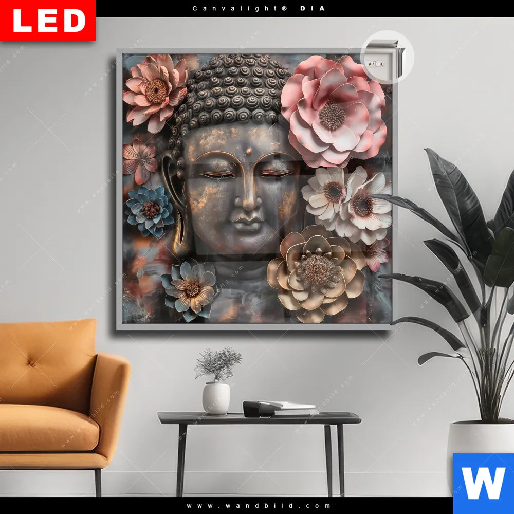 Canvalight® DIA Leuchtbild | Spiritueller Buddha und Blumen | Quadrat