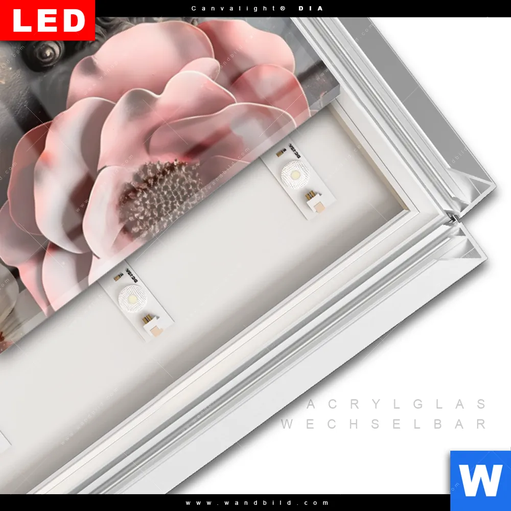 LED-Glasbild mit austauschbarem Acrylglas-Druck (Wechselbild)