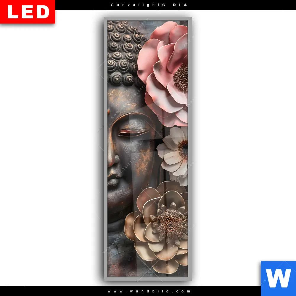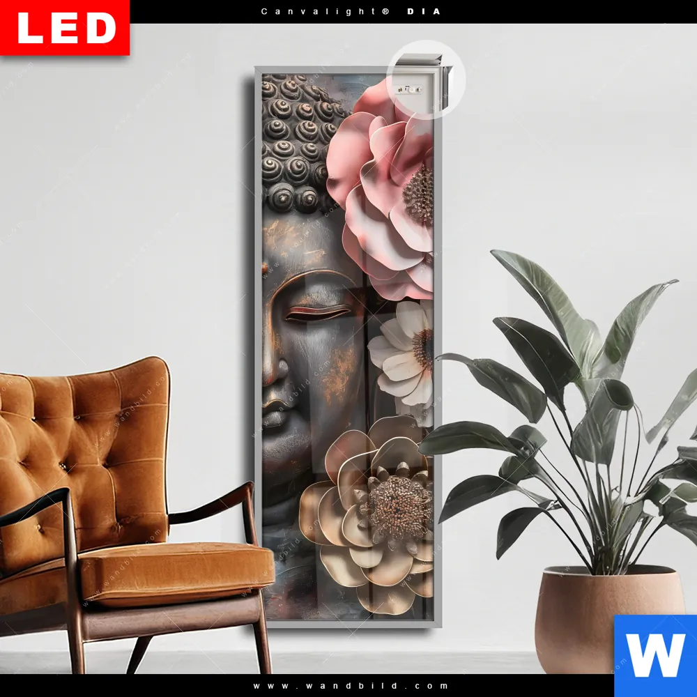 Canvalight® DIA Leuchtbild | Spiritueller Buddha und Blumen | Schmal