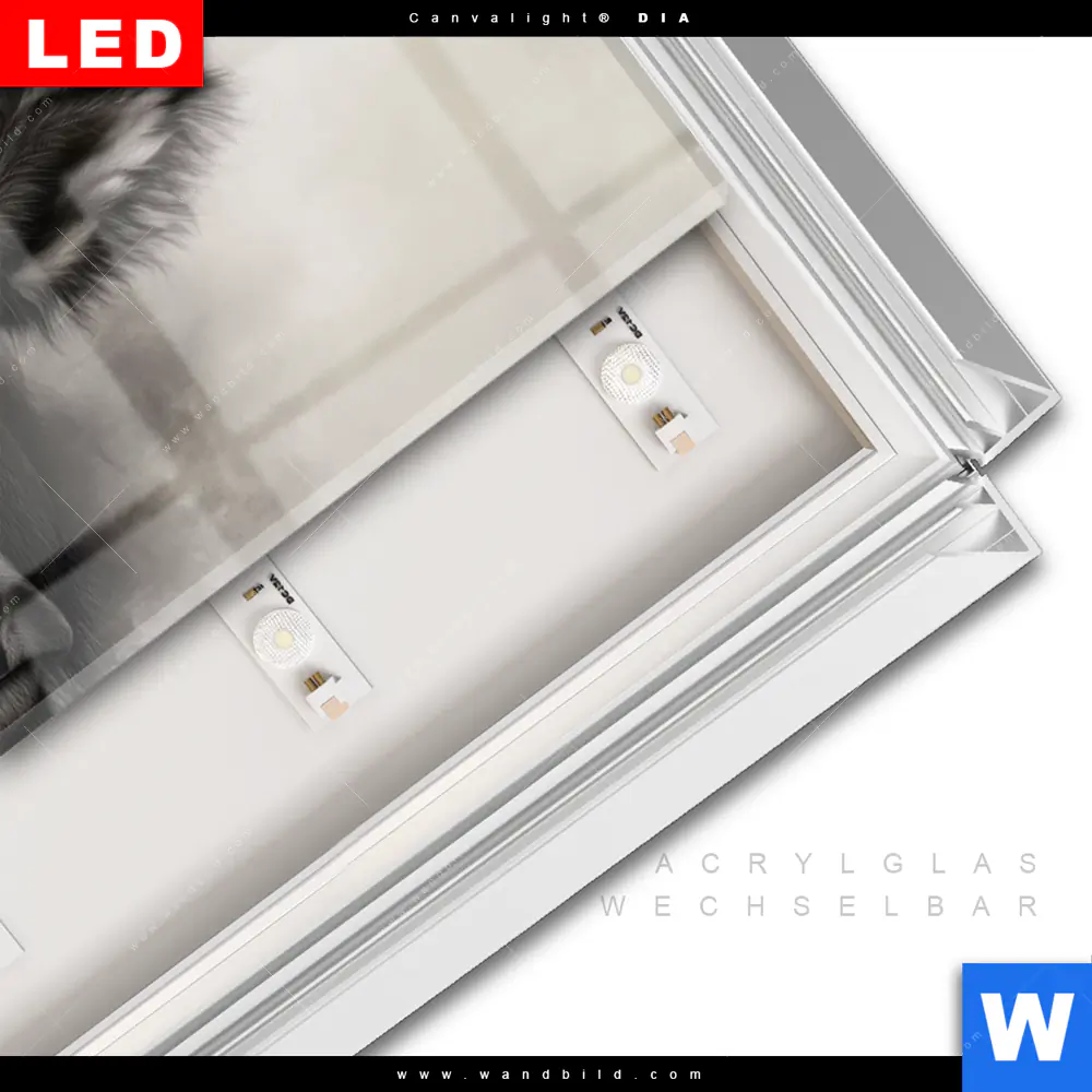LED-Glasbild mit austauschbarem Acrylglas-Druck (Wechselbild)