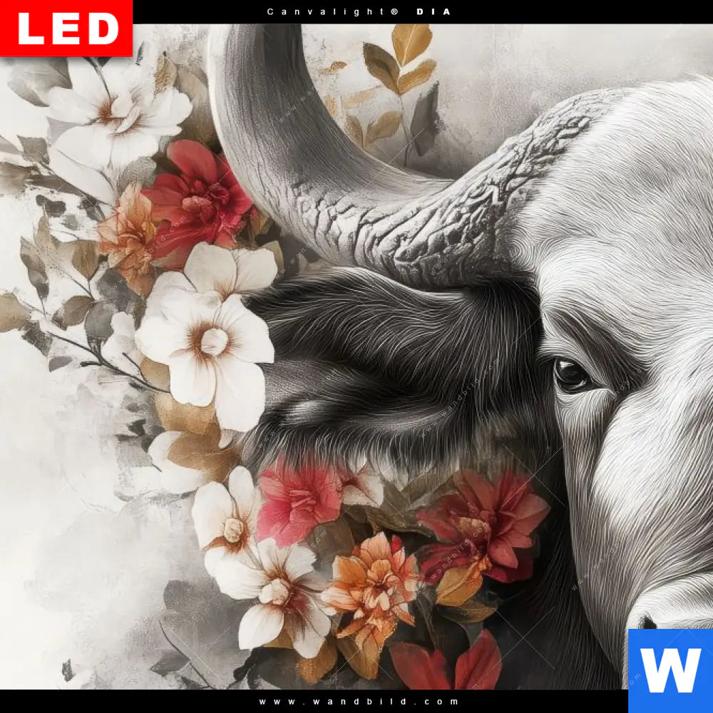 Canvalight® DIA Leuchtbild | Starker Bulle mit Blumen | Panorama