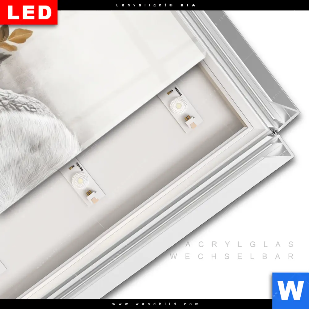 LED-Glasbild mit austauschbarem Acrylglas-Druck (Wechselbild)