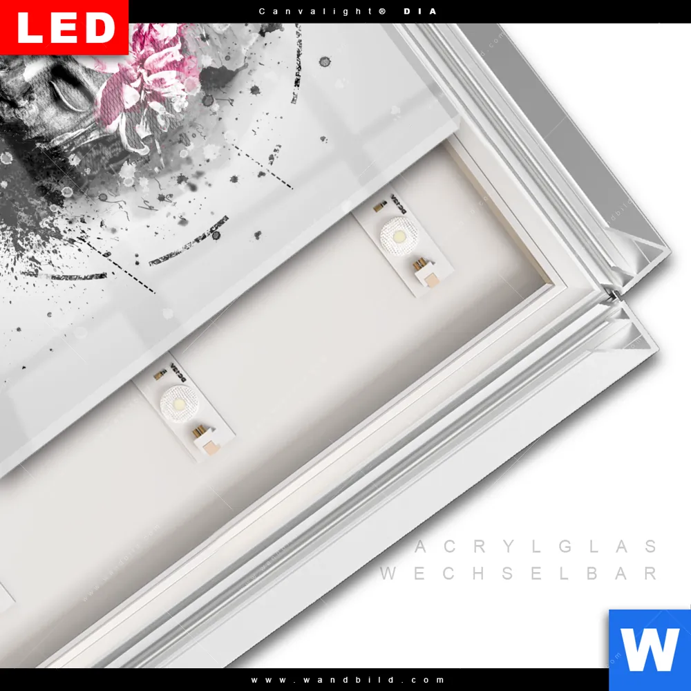 LED-Glasbild mit austauschbarem Acrylglas-Druck (Wechselbild)