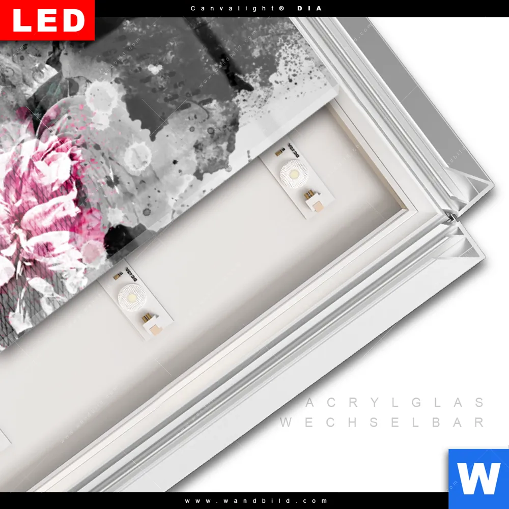 LED-Glasbild mit austauschbarem Acrylglas-Druck (Wechselbild)