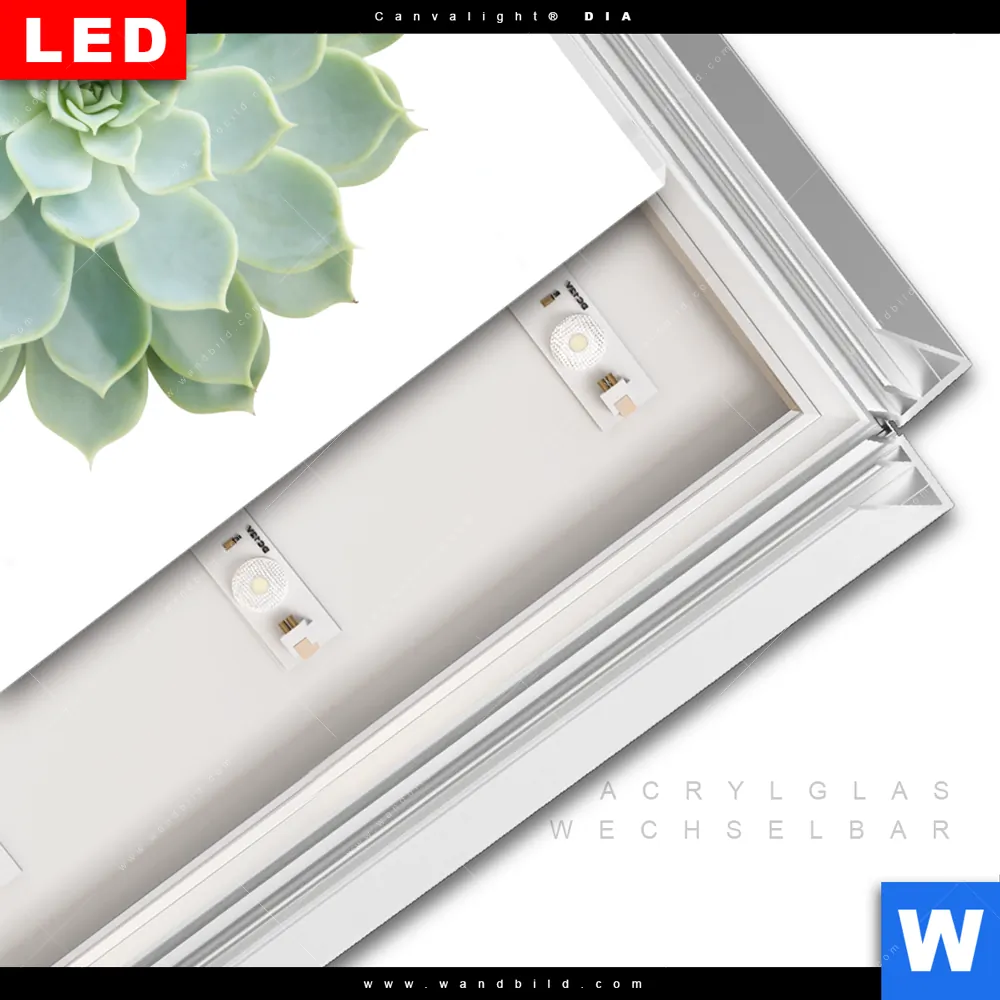 LED-Glasbild mit austauschbarem Acrylglas-Druck (Wechselbild)