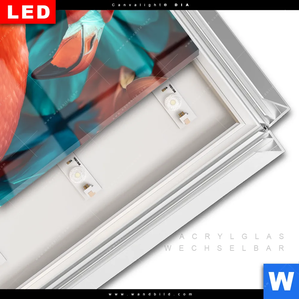 LED-Glasbild mit austauschbarem Acrylglas-Druck (Wechselbild)