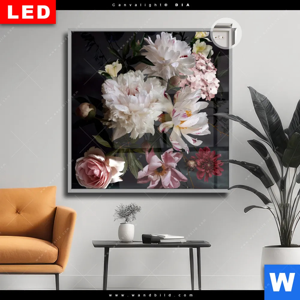 Canvalight® DIA Leuchtbild | Weiße Pfingstrosen | Quadrat