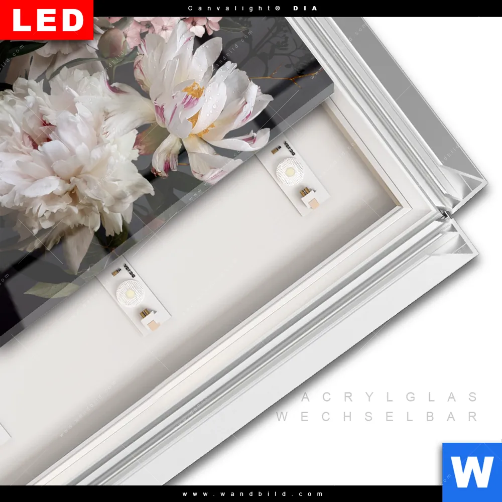LED-Glasbild mit austauschbarem Acrylglas-Druck (Wechselbild)