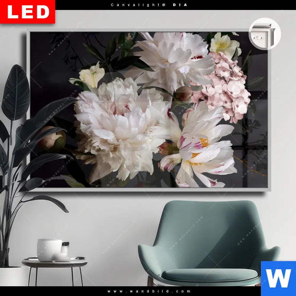 Canvalight® DIA Leuchtbild | Weiße Pfingstrosen | Querformat