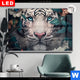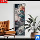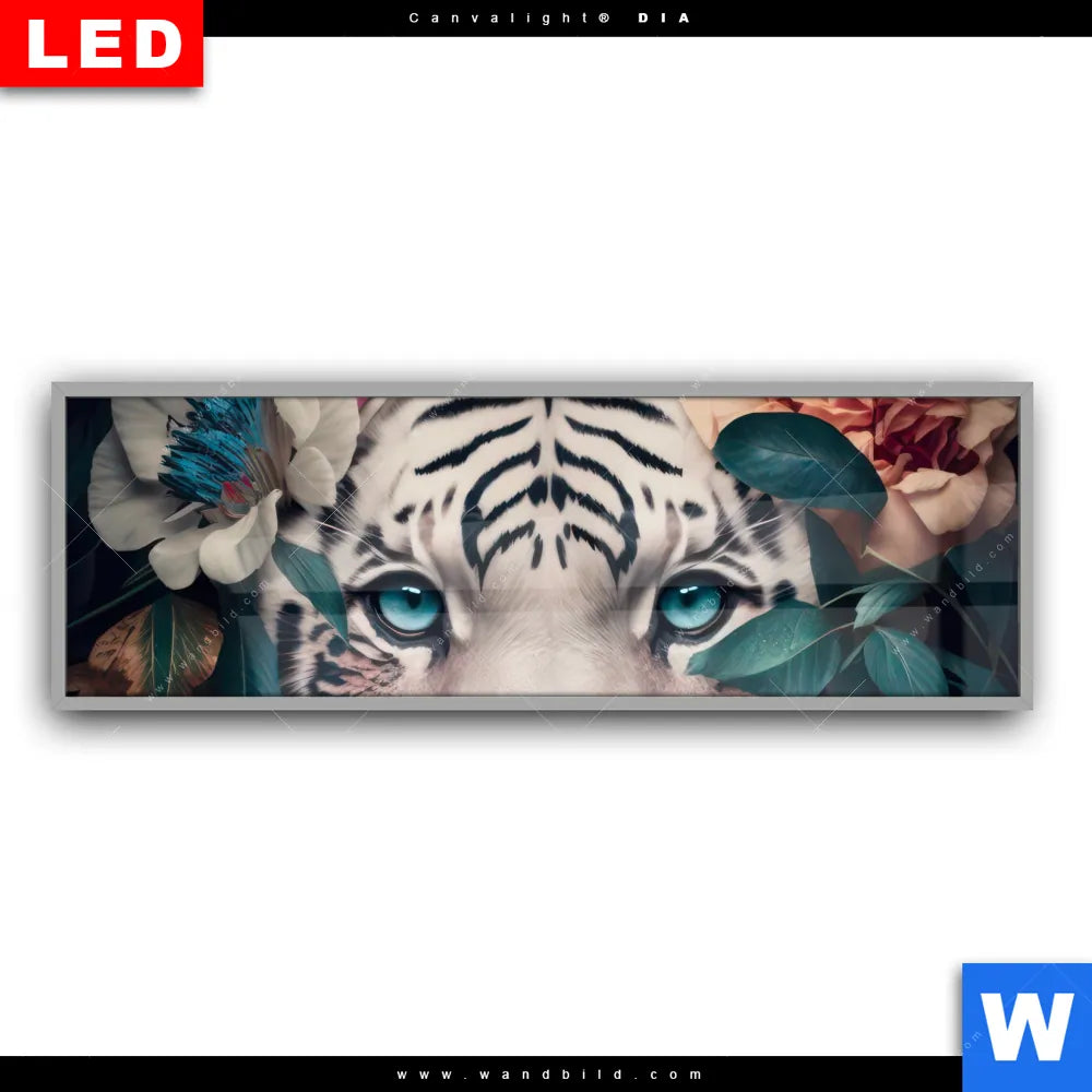 Canvalight® DIA Leuchtbild | Weißer Tiger mit blauen Augen zwischen Blumen | Panorama