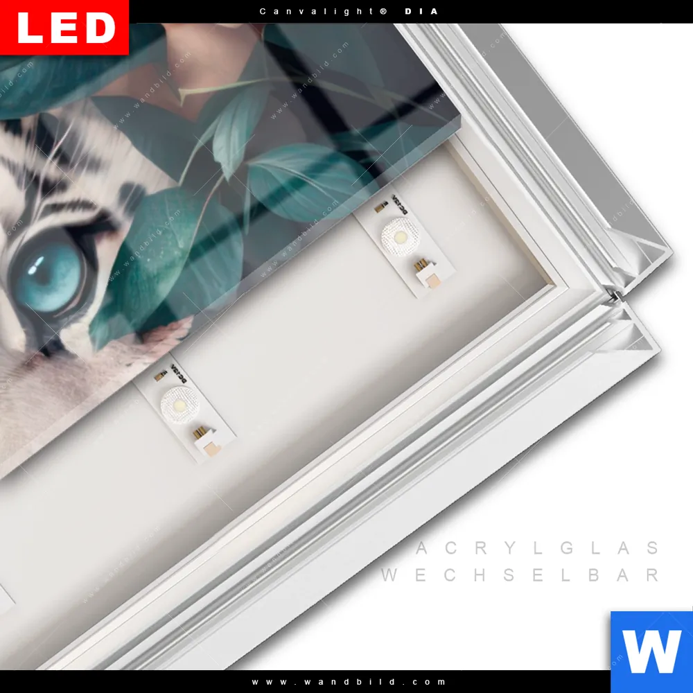 LED-Glasbild mit austauschbarem Acrylglas-Druck (Wechselbild)