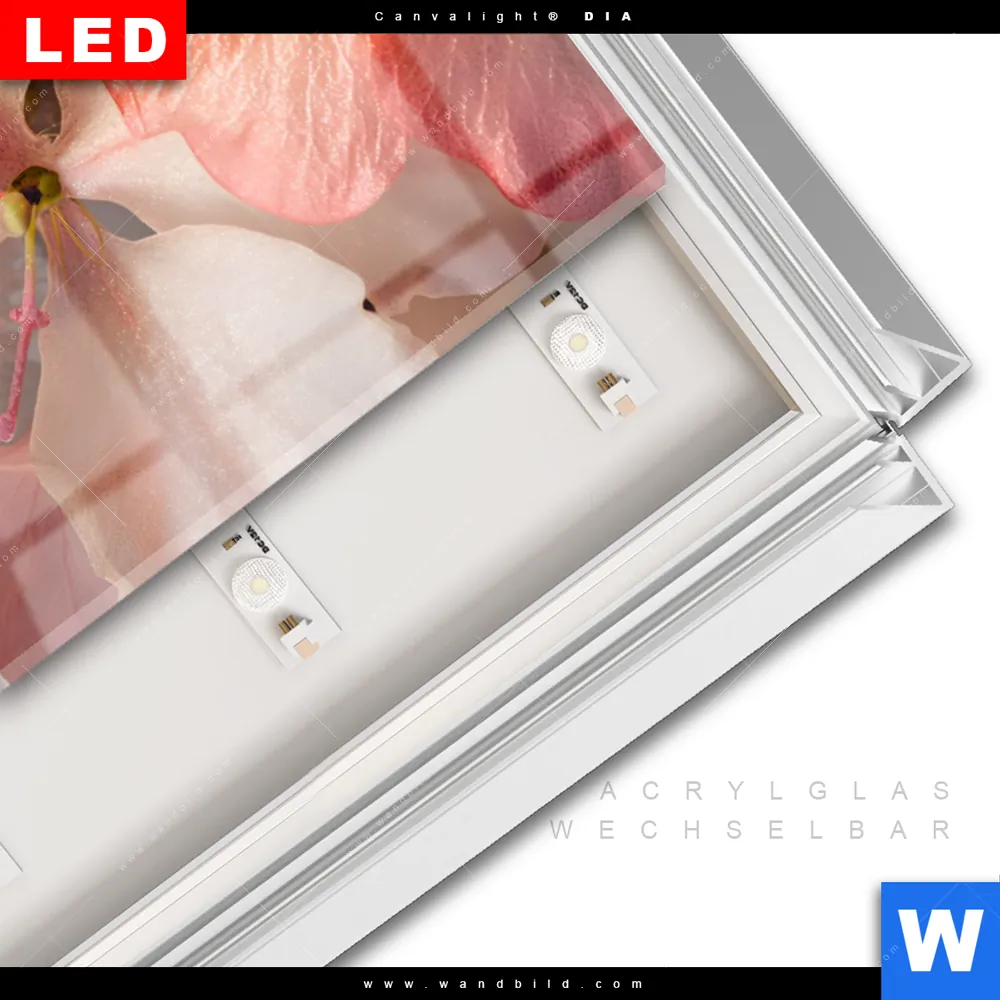 LED-Glasbild mit austauschbarem Acrylglas-Druck (Wechselbild)