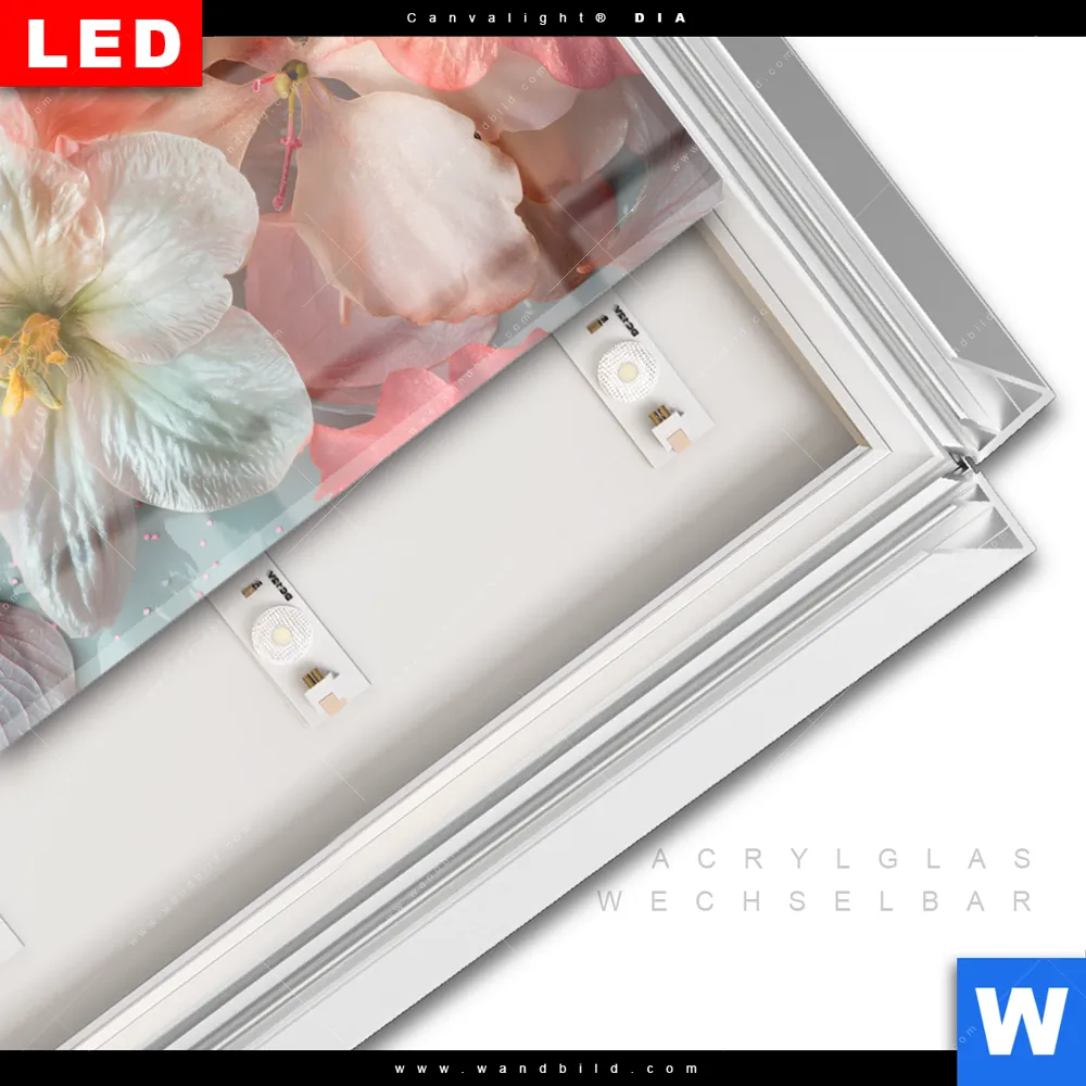 LED-Glasbild mit austauschbarem Acrylglas-Druck (Wechselbild)