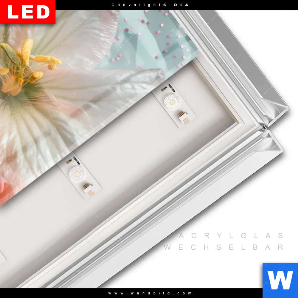 LED-Glasbild mit austauschbarem Acrylglas-Druck (Wechselbild)