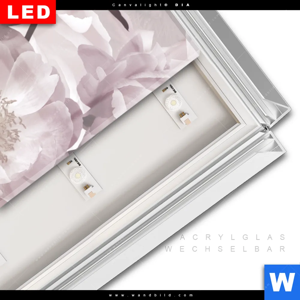 LED-Glasbild mit austauschbarem Acrylglas-Druck (Wechselbild)