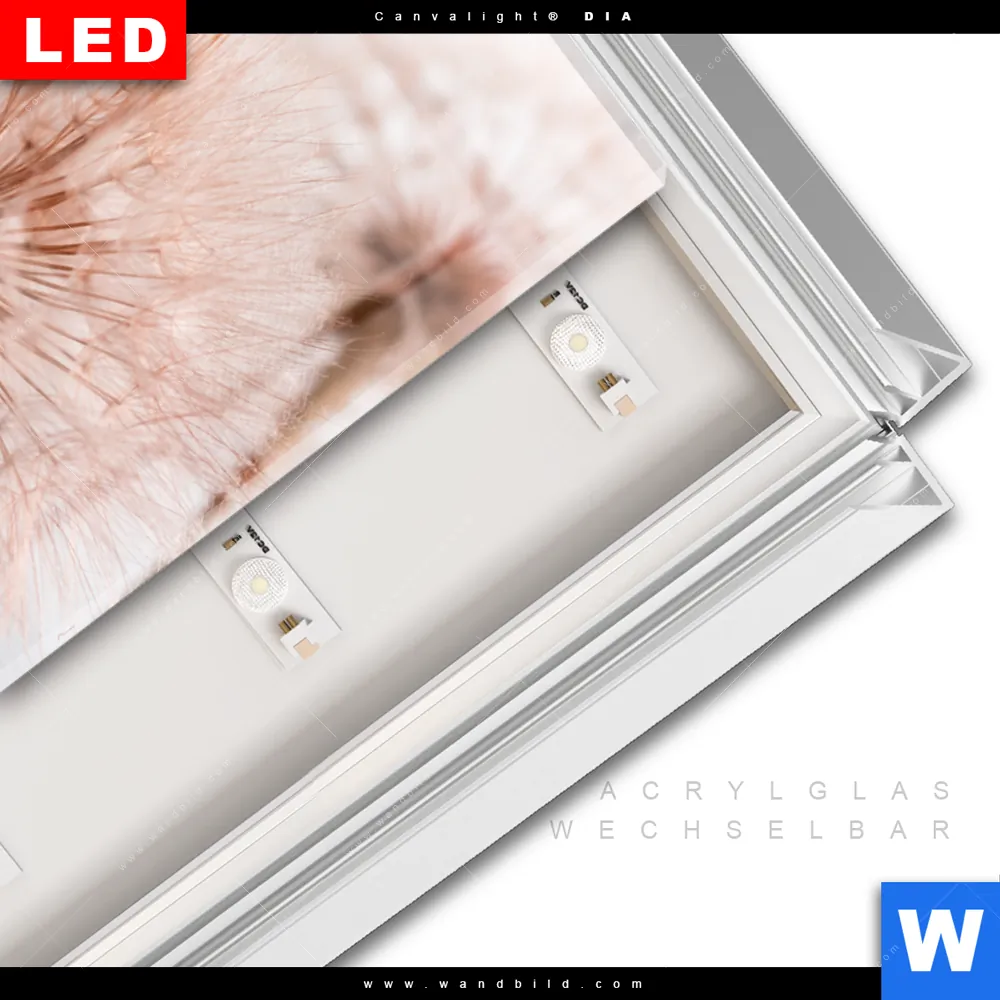 LED-Glasbild mit austauschbarem Acrylglas-Druck (Wechselbild)