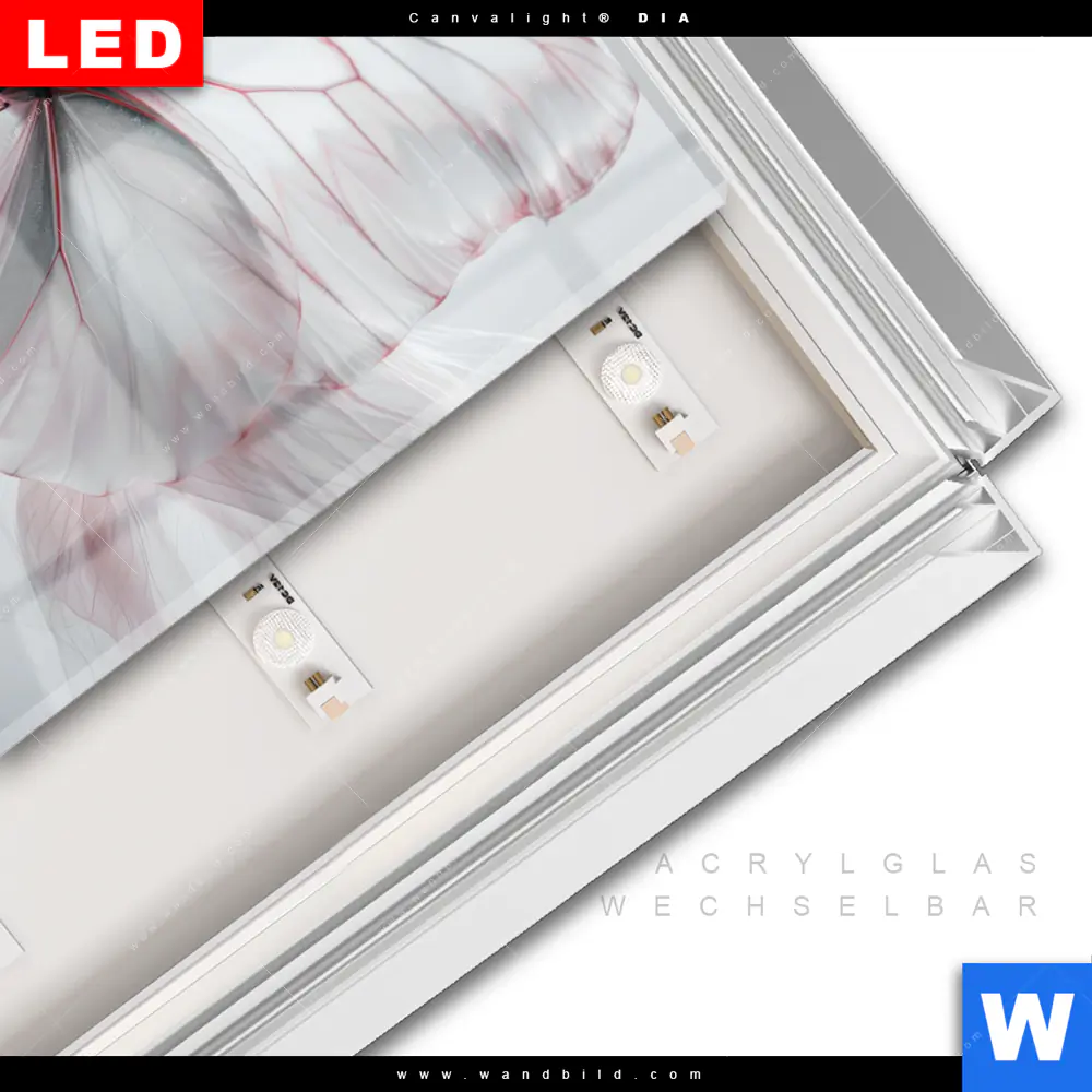 LED-Glasbild mit austauschbarem Acrylglas-Druck (Wechselbild)