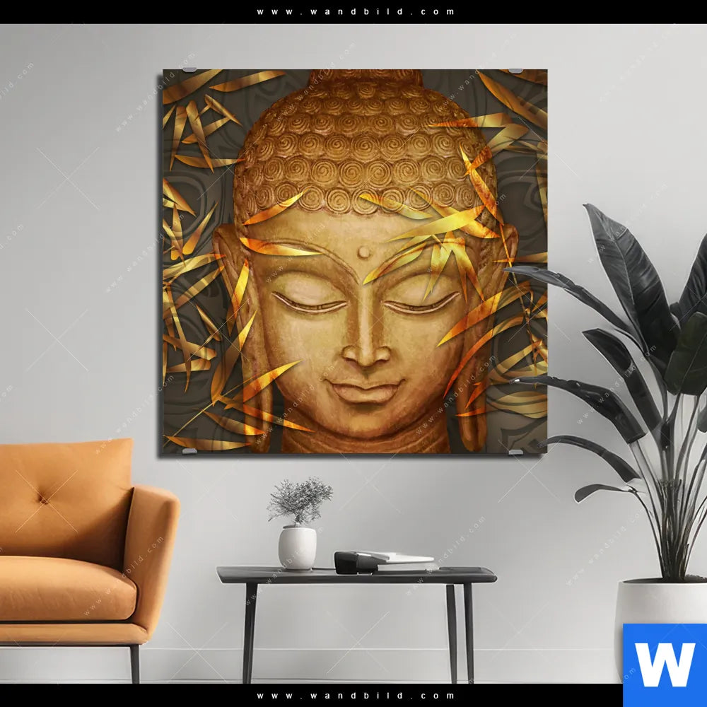 Alu-Dibond Bild | Buddha & Bambus in Gold | Quadrat