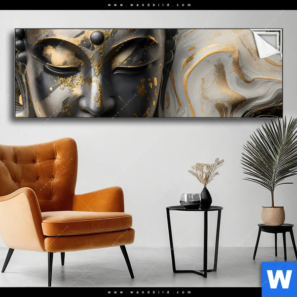 Spannbild | Goldener Buddha Fluid Art | Panorama