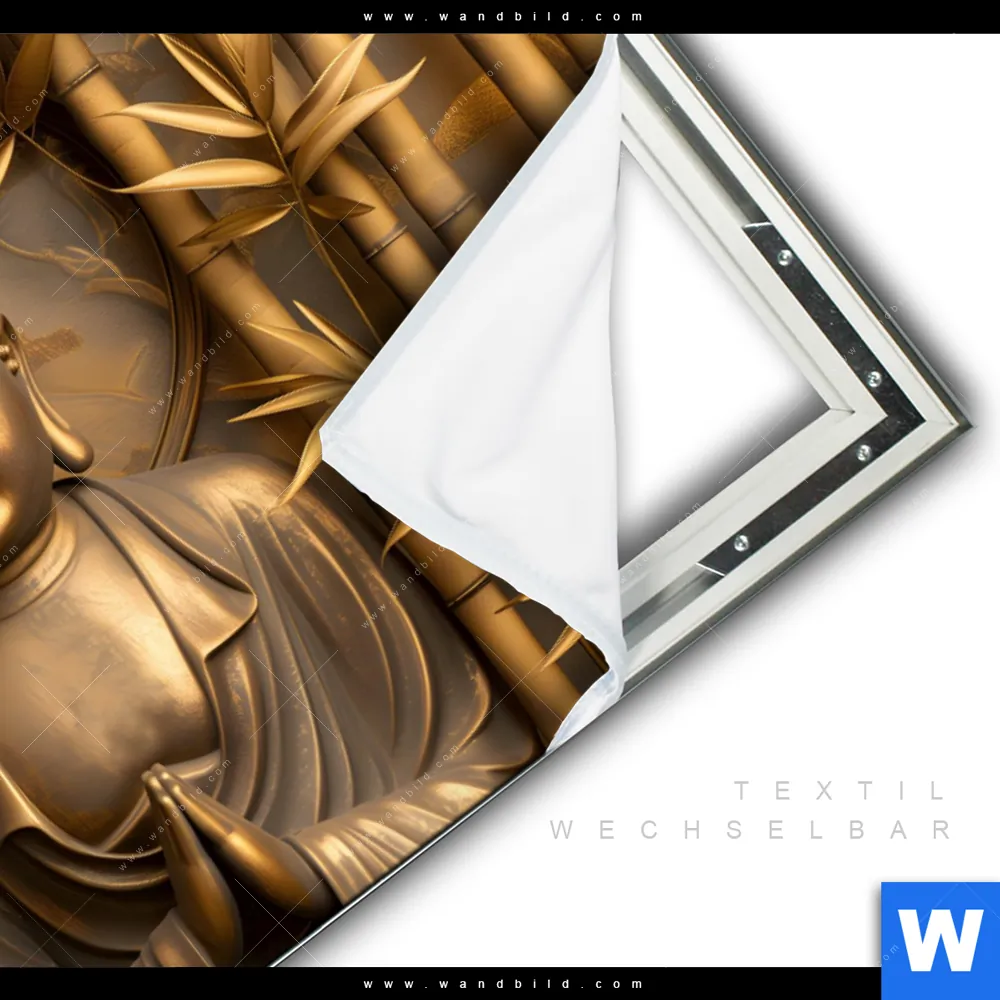 Spannbild | Goldener Buddha im Bambuswald | Querformat