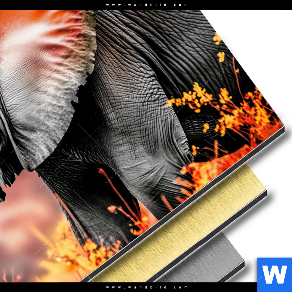 Aluminiumbild gebürstet | Elefant - Savannenzauber in Afrika | Querformat