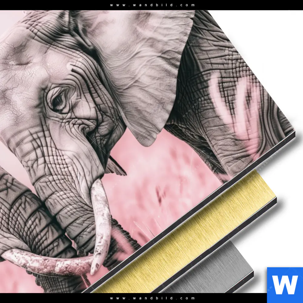 Aluminiumbild gebürstet | Elefanten - Harmonie in Pastell | Querformat