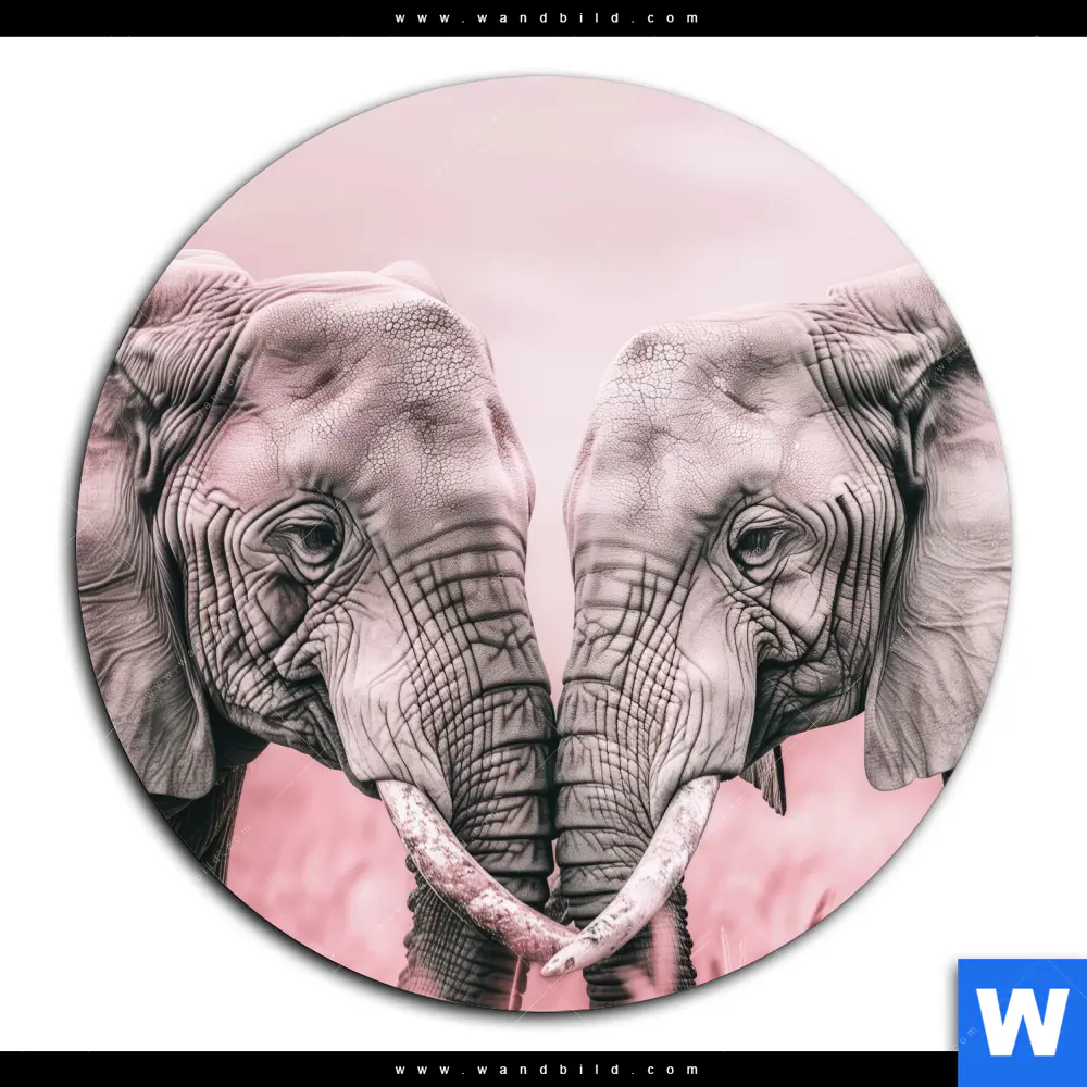 Aluminiumbild gebürstet | Elefanten - Harmonie in Pastell | Rund