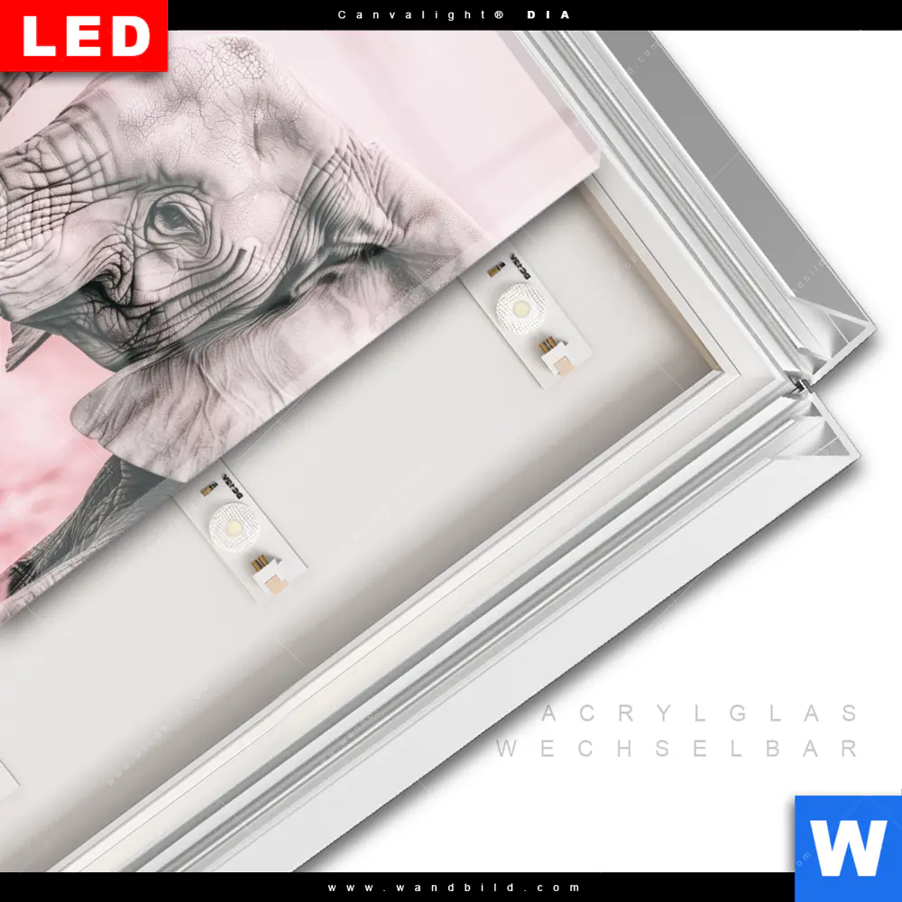 Canvalight® DIA Leuchtbild | Elefanten - Harmonie in Pastell | Quadrat