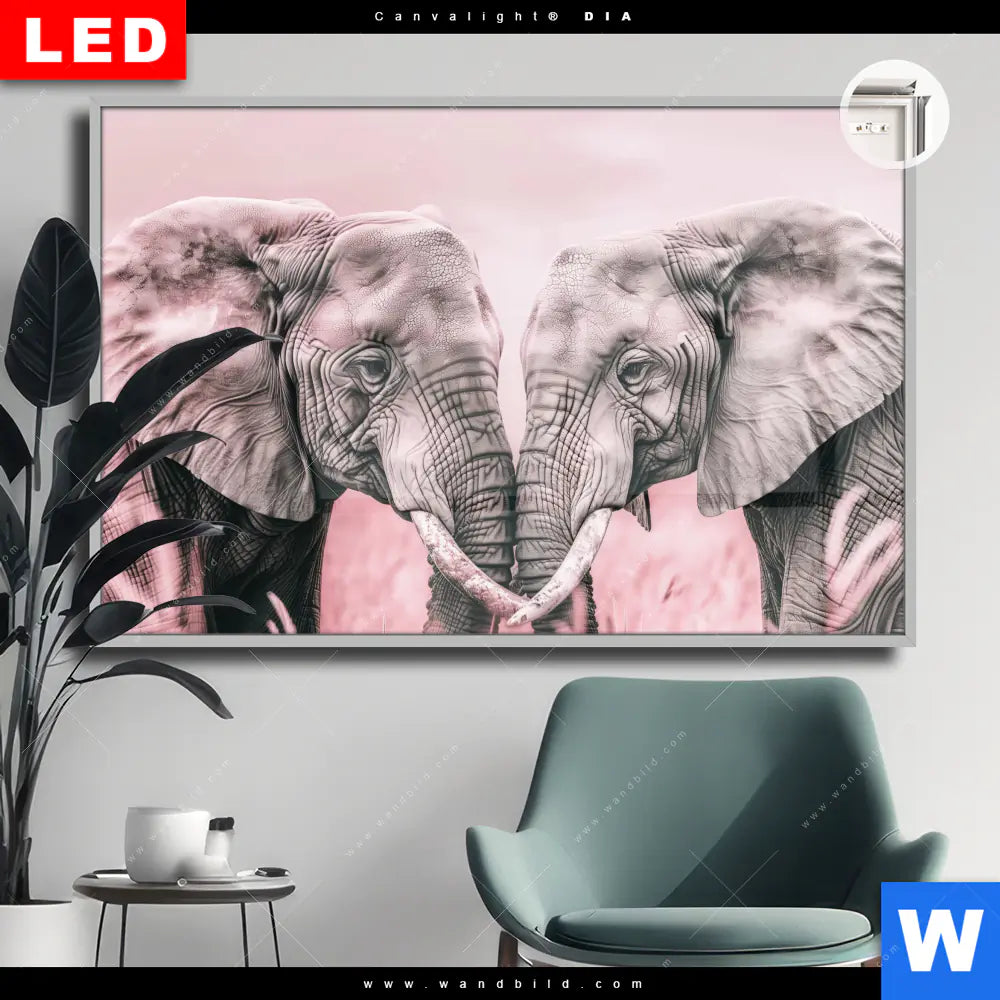 Canvalight® DIA Leuchtbild | Elefanten - Harmonie in Pastell | Querformat
