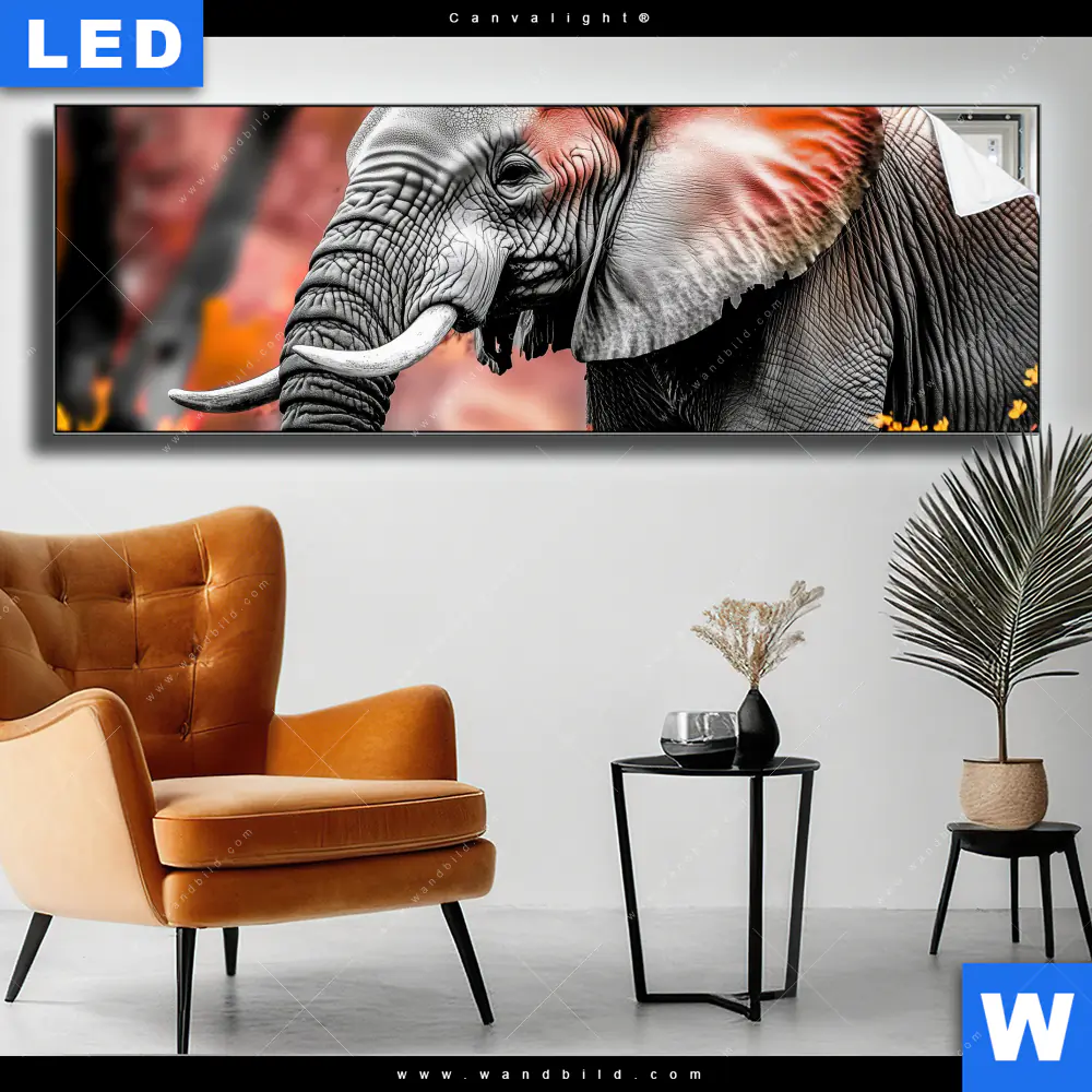 Canvalight® Leuchtbild | Elefant - Savannenzauber in Afrika | Panorama
