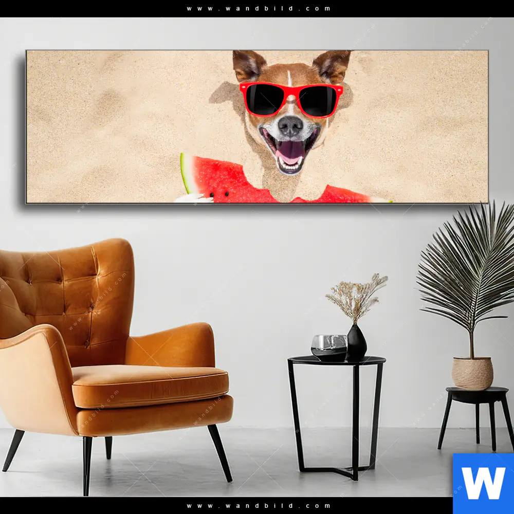 Wechselmotiv Textil | Lustiger Hund am Strand | Panorama