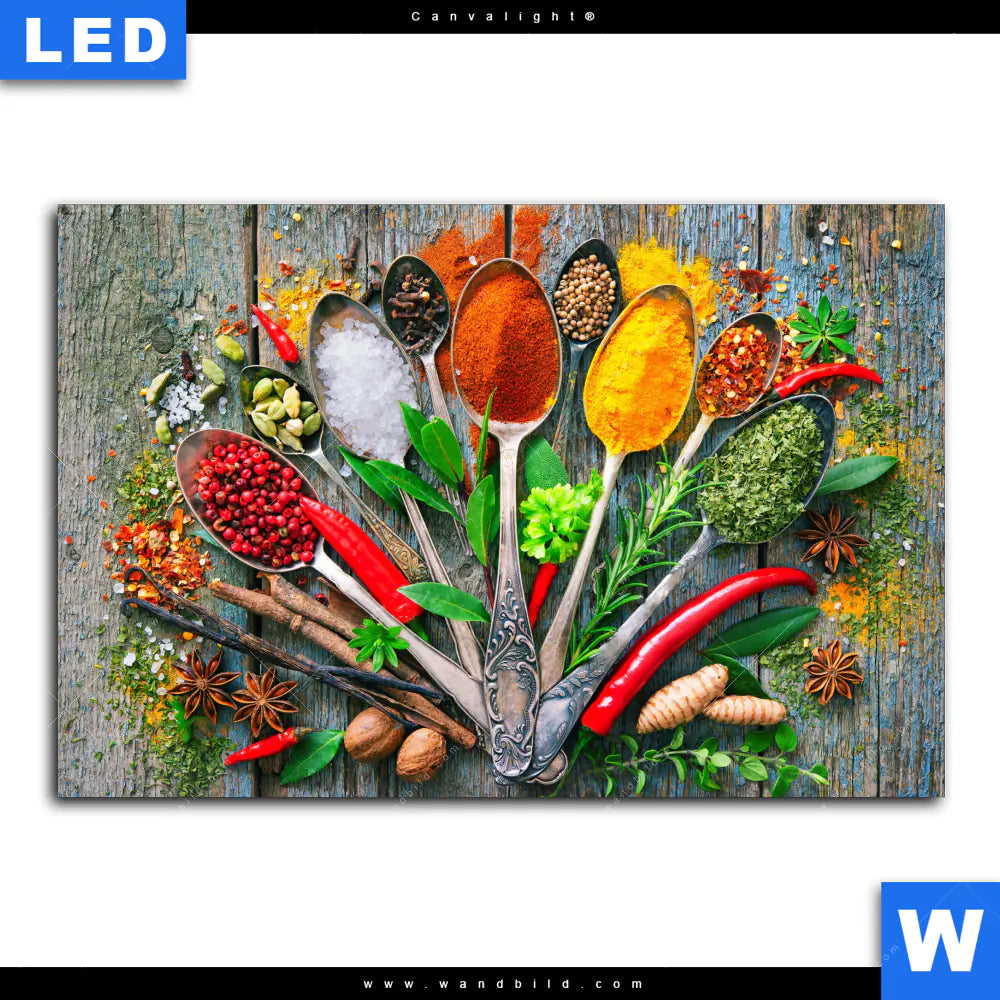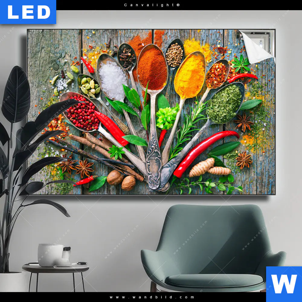 Canvalight® Leuchtbild | Löffel mit Kräutern und Gewürzen | Querformat