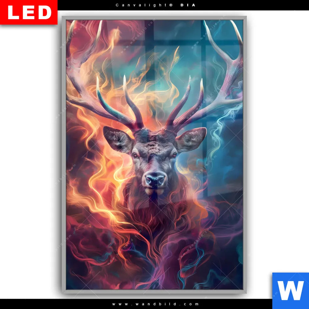 Leuchtbild Acrylglas Canvalight® DIA | Bunter Hirsch in Flammen | Hochformat