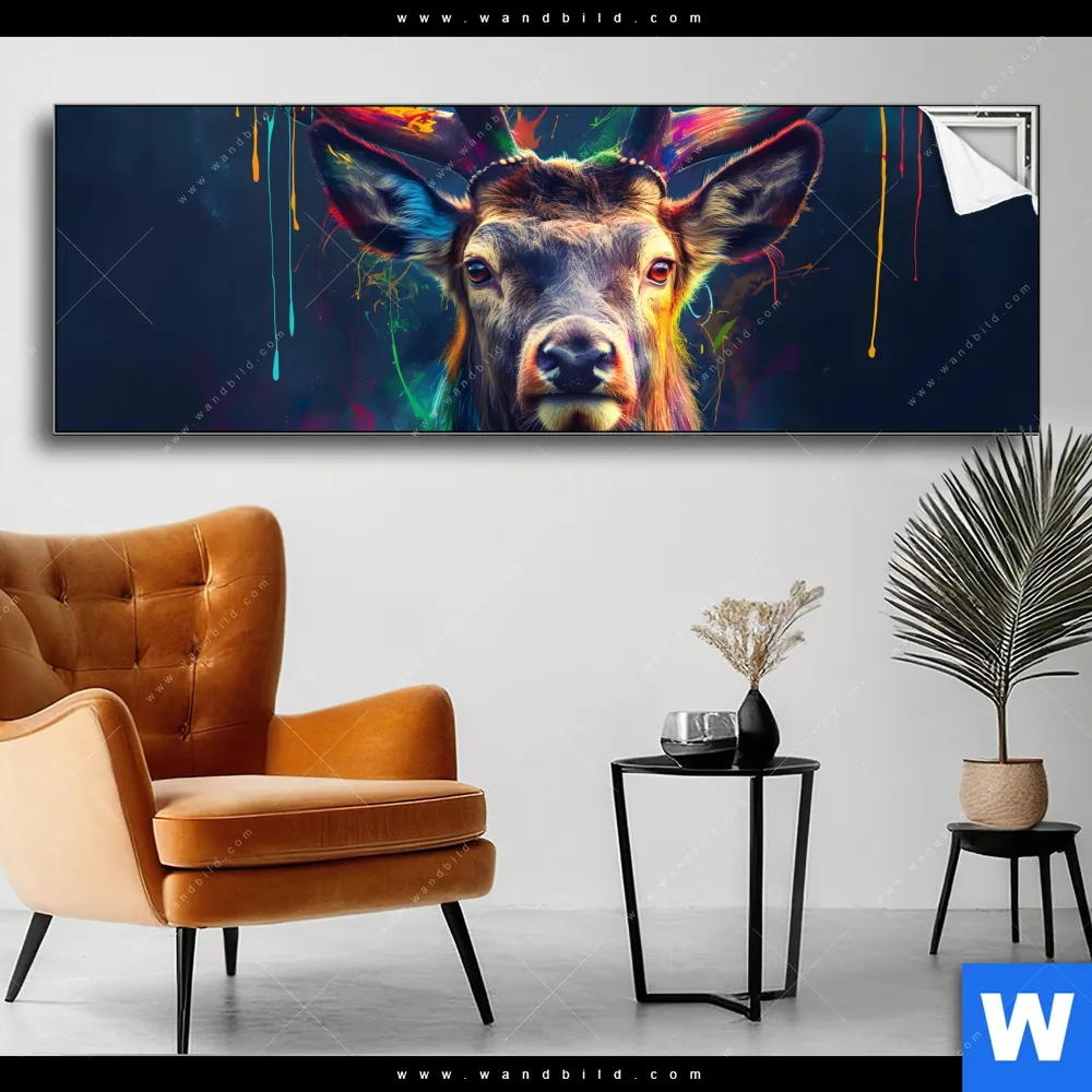 Spannbild | Hirsch im leuchtenden Farbmix | Panorama