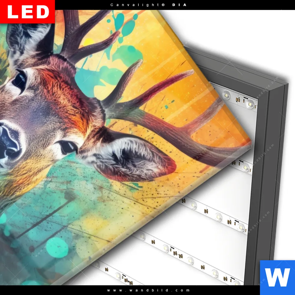 Wechselmotiv Acrylglas Canvalight® DIA | Farbenfrohes Hirschporträt | Quadrat