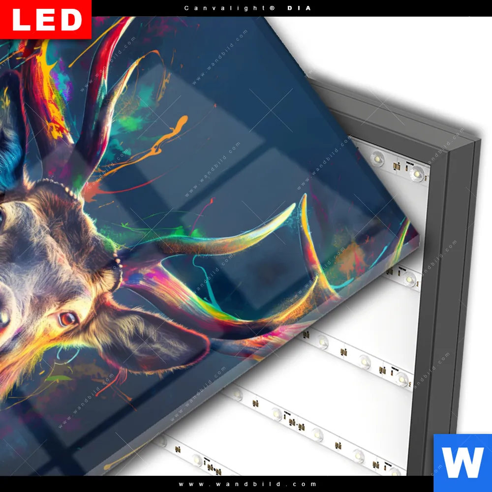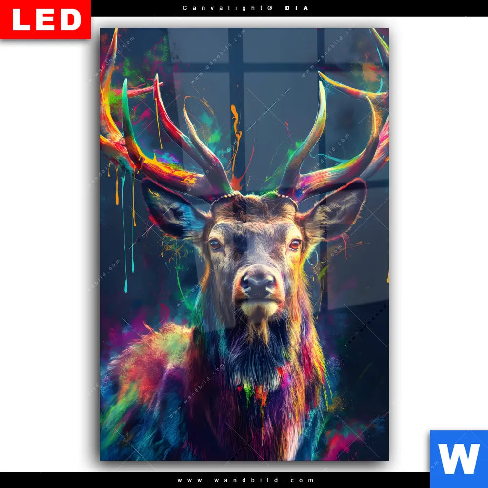 Wechselmotiv Acrylglas Canvalight® DIA | Hirsch im leuchtenden Farbmix | Hochformat
