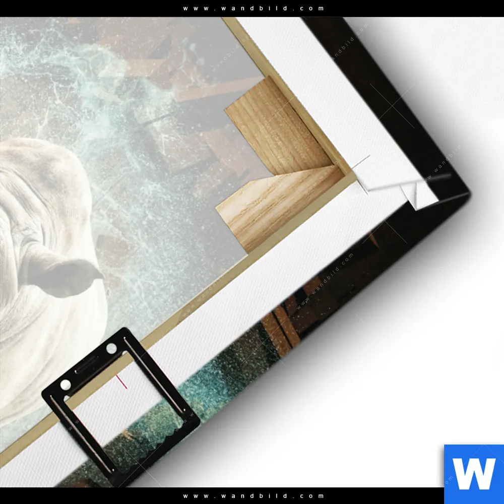 Leinwandbild | Nashorn zerstört Wand | Hochformat