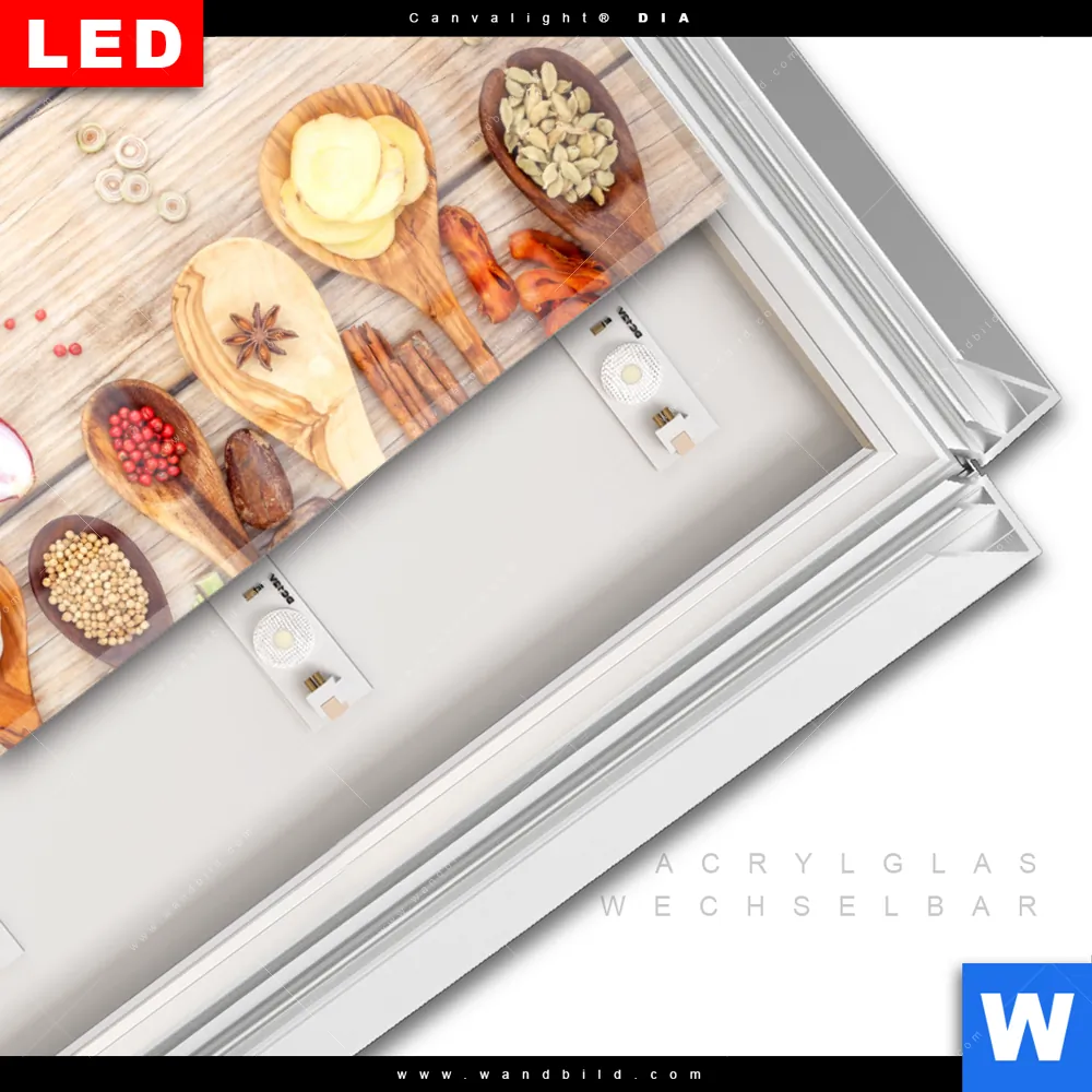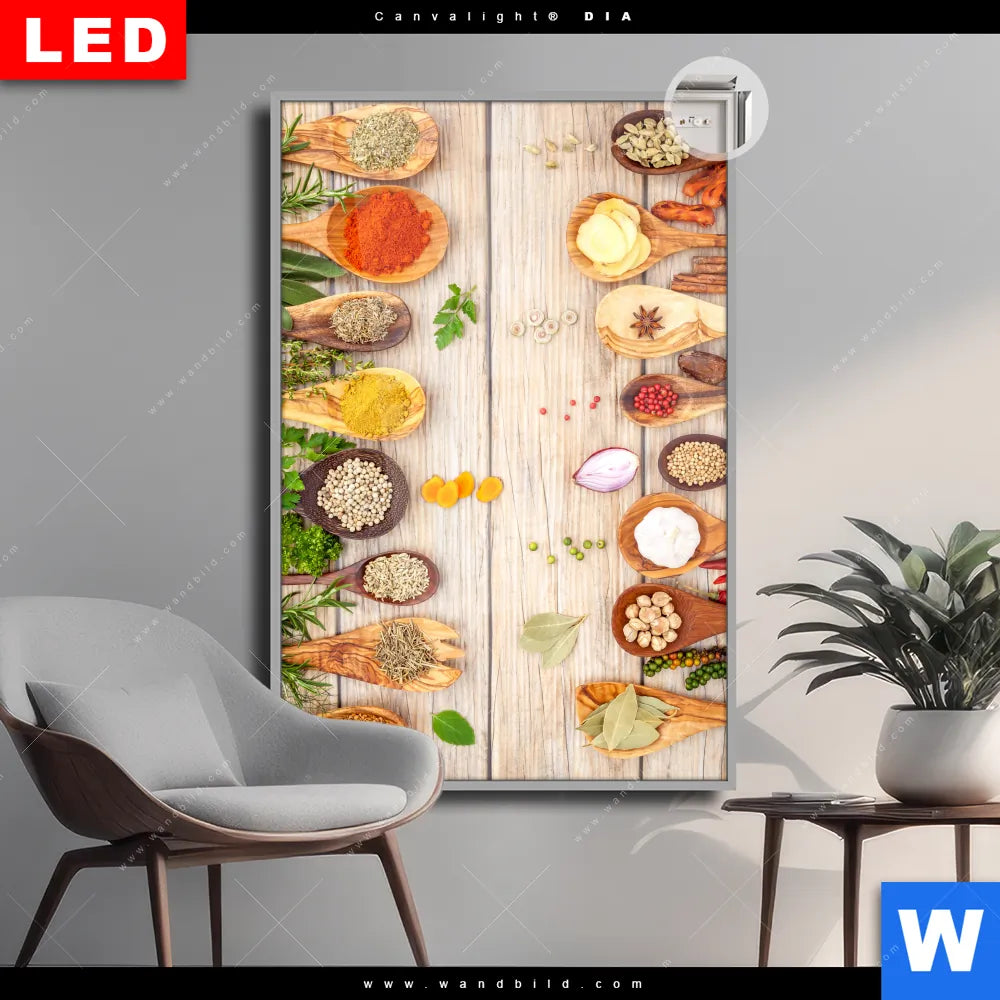 Canvalight® DIA Leuchtbild | Gewürze auf hölzernen Löffeln | Hochformat