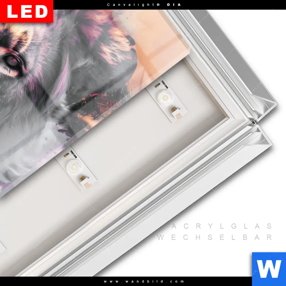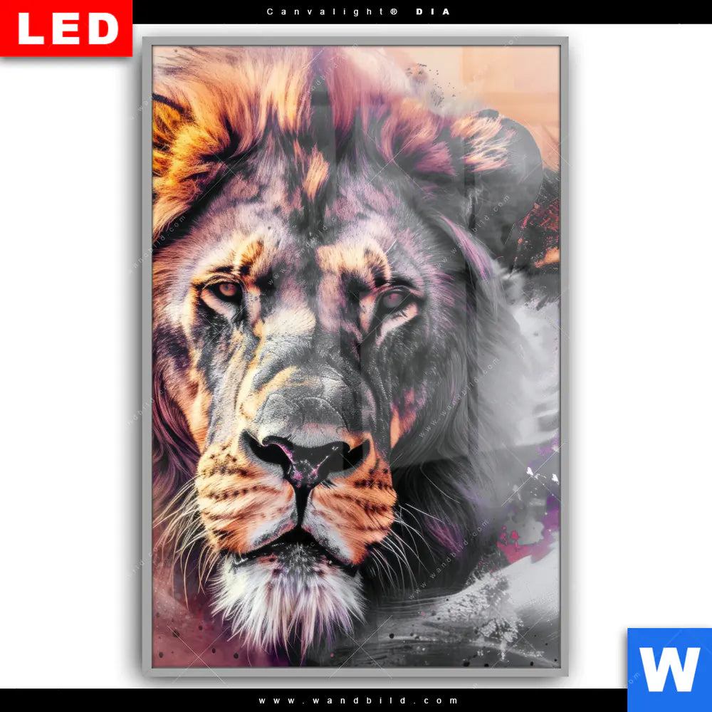 Canvalight® DIA Leuchtbild | Löwe im Farbensturm | Hochformat