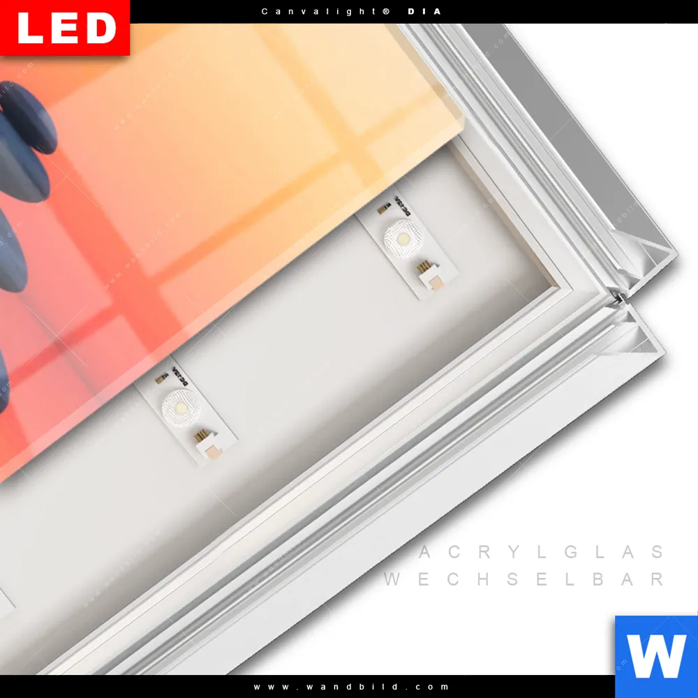 LED-Glasbild mit austauschbarem Acrylglas-Druck (Wechselbild)