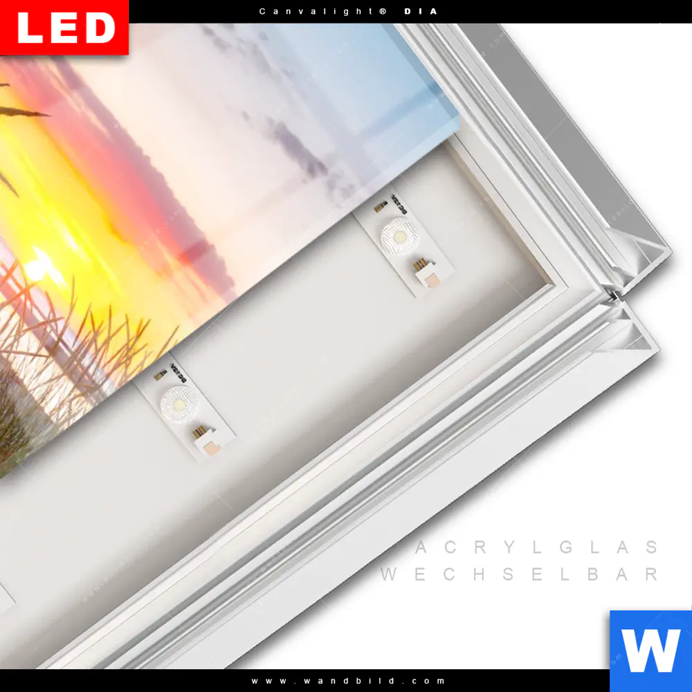LED-Glasbild mit austauschbarem Acrylglas-Druck (Wechselbild)
