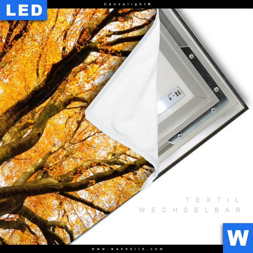 LED-Textilrahmen-Bild mit austauschbarem Wald - Bäume Textil-Druck (Wechselbild)