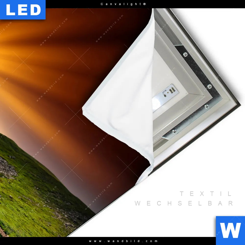 LED-Textilrahmen-Bild mit austauschbarem Landschaften Textil-Druck (Wechselbild)